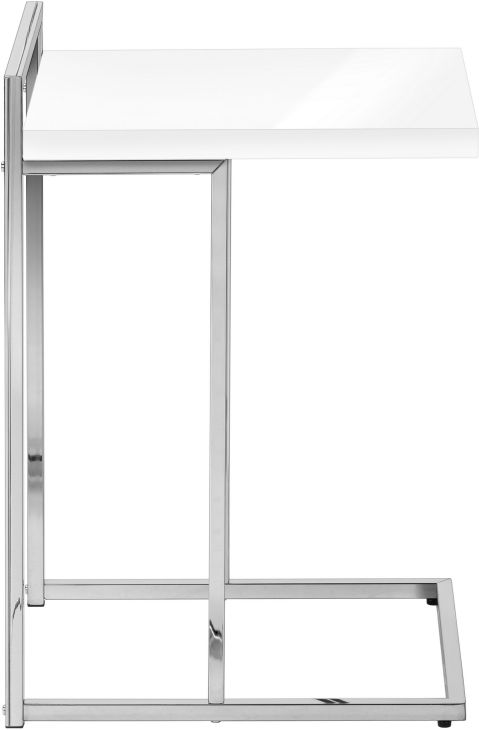 Accent Table, C-Shaped, End, Side, Snack, Living Room, Bedroom, Metal, Laminate, Glossy White, Chrome, Contemporary, Modern