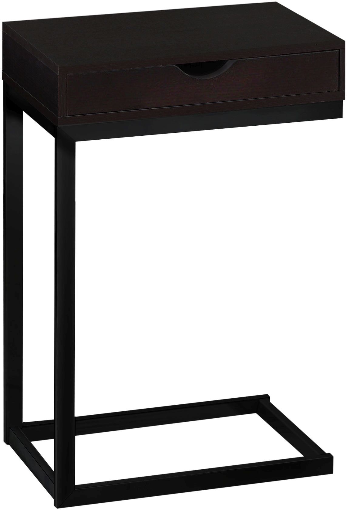 With a whole lot of classiness, this modern C shape side and end table also comes with all the practicality you need. An ideal fit alongside your sofa or bed, the accent table is perfect for your small home, apartment or condo and will surely bring more jazz to your movie night, study session or quiet time. Featuring a walnut finish, the sturdy black metal base sits slightly off the ground to prevent damage to your floor. Don't forget a convenient storage drawer for any living room accessories such as remotes, coasters, magazines or more. Make this your new favorite living room piece.