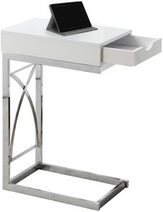 With a whole lot of snazziness, this modern C shape side and end table also comes with all the practicality you need. An ideal fit alongside your sofa or bed, the accent table is perfect for your small home, apartment or condo and will surely bring more jazz to your movie night, study session or quiet time. In a thick panel composition with a glossy white finish, there is no worry about blending this with your existing decor and furniture items. The table also features a sturdy chrome metal base. Don't forget the convenient storage drawer that opens from both sides to make this accent table perfect for remotes, coasters, magazines or more. Your new favorite living room piece - Assured.