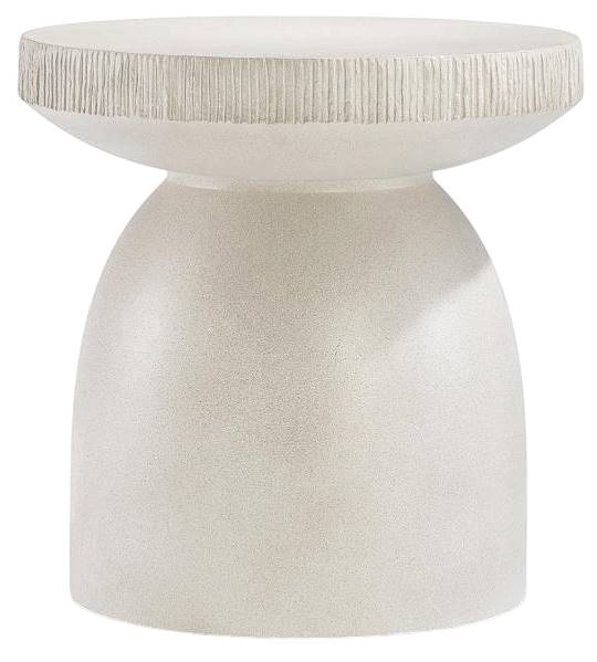 Molded from glass-reinforced concrete, the Antibes side table has the sculptural style of a sleek urn shape. Finished in Pumice, the base and top of the table are smooth and monolithic, with a textural band around the edge of the tables top.Read More