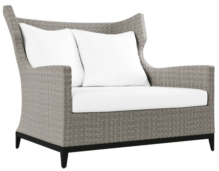 Bernhardt Exteriors is characterized by exceptional luxury and elegant design. The extra-wide Captiva chair offers a sophisticated spin on a classic wingback design. Expertly crafted from All-Weather Wicker in a herringbone weave, it features a quick-dry foam cushion and fiber back pillows perfect for relaxation on a summer's day.Read More