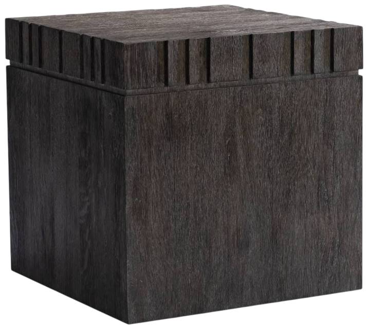 A raised geometric pattern wraps the top of the Cowley side table, giving it a unique modern style. The simple square pillar design showcases the natural wood grain in a moody Tadon finish.Read More
