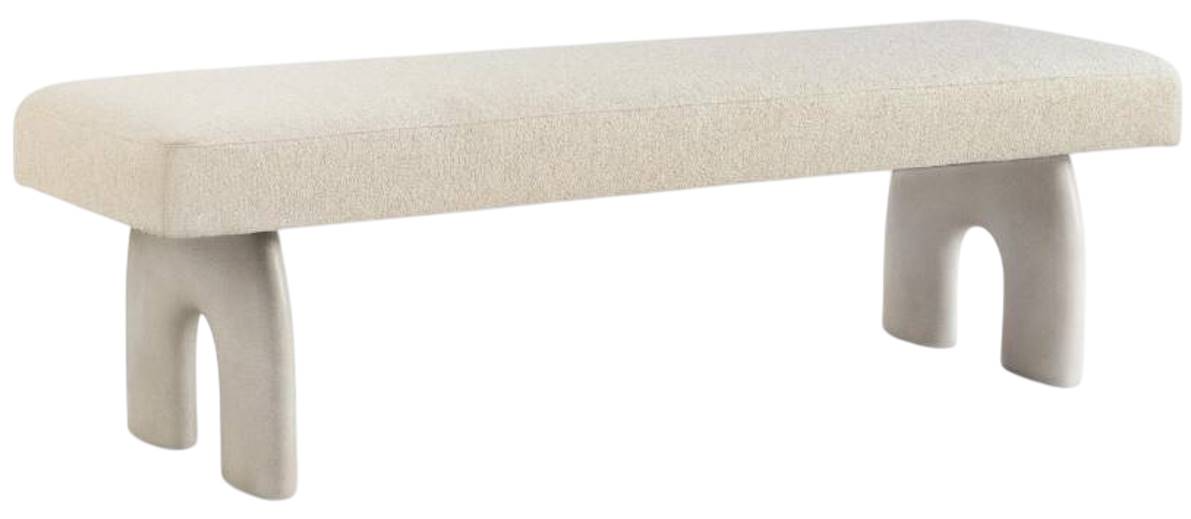 Unique arched legs give the Antibes bench its distinctive design. Formed of textured glass-reinforced concrete, they balance a rectangular upholstered seat with softened corners. Its a light and serene style that offers monolithic beauty.Read More