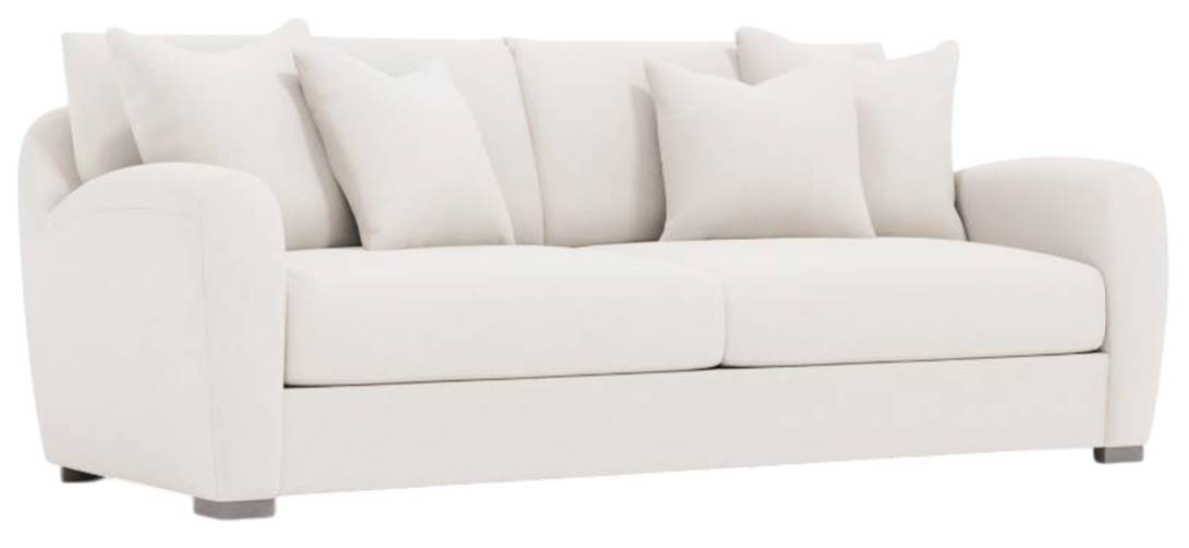 The Asher sofa has a unique frame with high-loft curved arms and a shaped back. Comfort comes from fiber back pillows, as well as four Blendown throw pillows. The enticing shape and deep seat creates a luxuriously restful statement.Read More