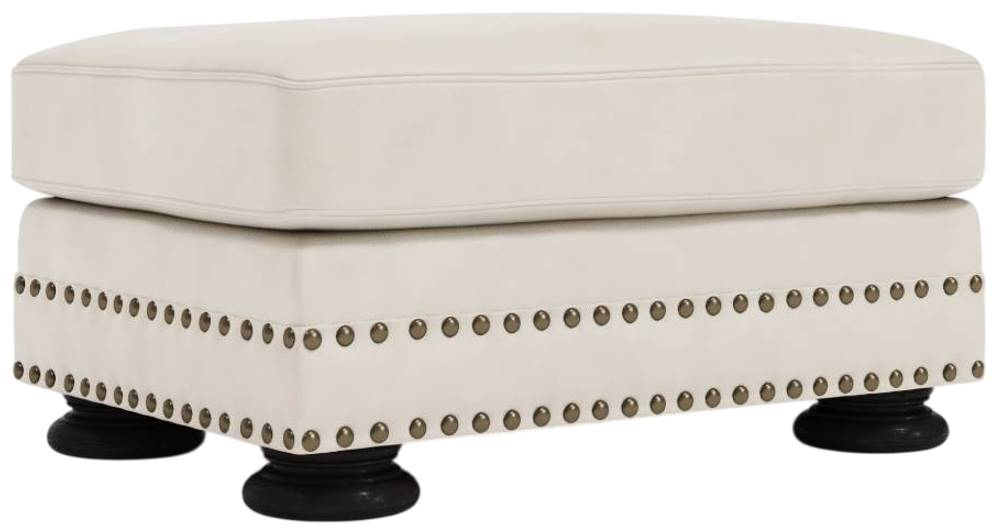 The Foster leather ottoman offers comfortable support with an air of traditional grandeur. A plush cushion invites relaxation, while nailhead trim and bun feet exude refinement. From a variety of fine leathers, sophisticated wood finishes and nailhead accents, this ottoman may be customized to suit any room.Read More
