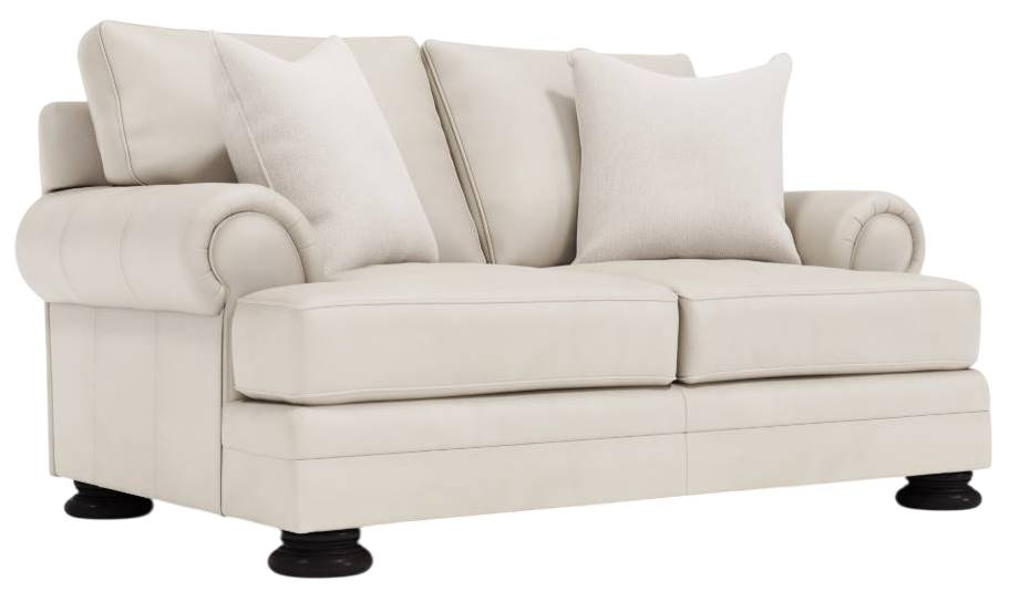 The Foster left arm loveseat brings comfortable support with an air of traditional grandeur. The plush cushions invite relaxation, while a rolled arm, welt trim, and wide bun feet exude refinement. With its fine leather upholstery and gracious scale, this loveseat offers grand, but livable style.Read More