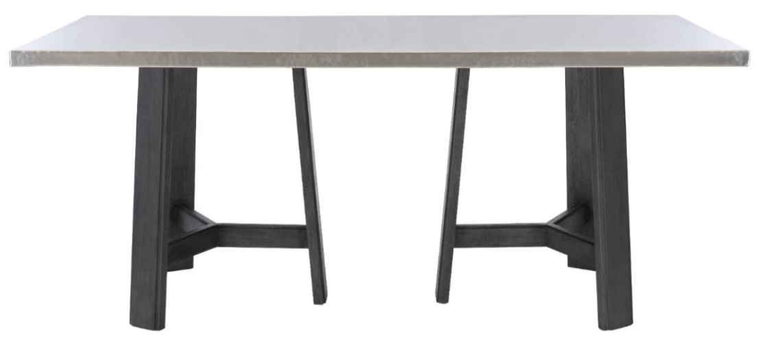 In the Harding dining table, straight lines and angles intersect for a balanced modern look. The rectangular top is wrapped in stainless steel, giving this piece a sleek industrial edge. Two symmetrical wood bases feature flared legs joined by stretchers.Read More