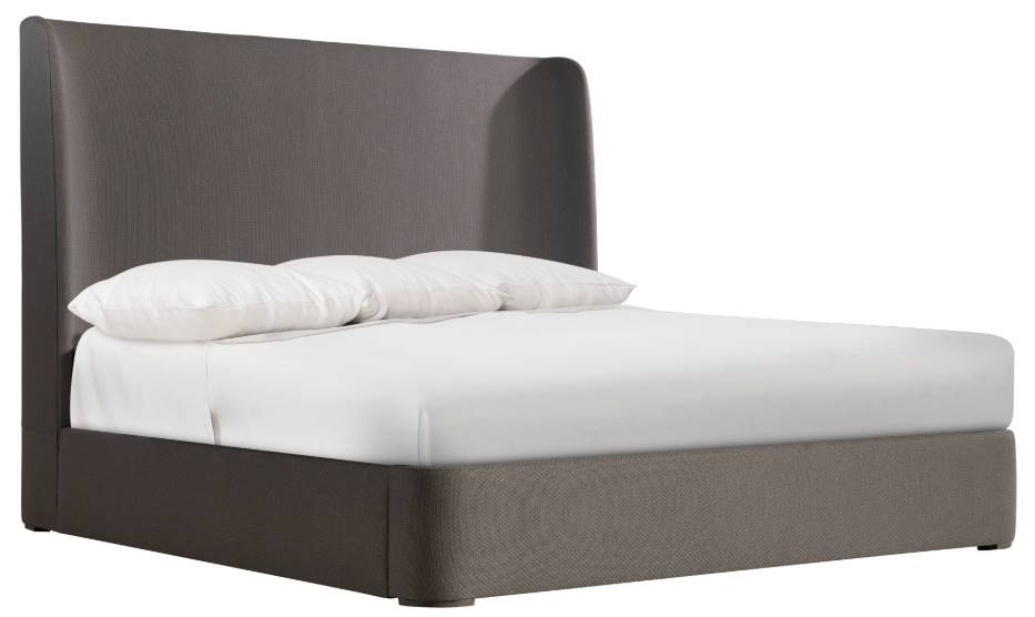 The Puro bed takes a traditional shelter design to new heights for comfort and style. The fully upholstered headboard wraps around at the corners and is supported by exposed wood feet in smoke finish. Fully upholstered footboard and side rails continue the comfort story for a gorgeously inviting look.Read More