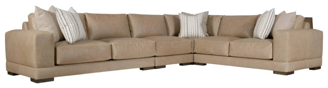 Straight lines are softened with gentle curves on the Lars sectional, complementing the wide track arms and bold silhouette. Plushly deep seat cushions and box-edge weltless bordered back pillows craft a comfort destination. Wide block feet take a stance in textured wood.Read More