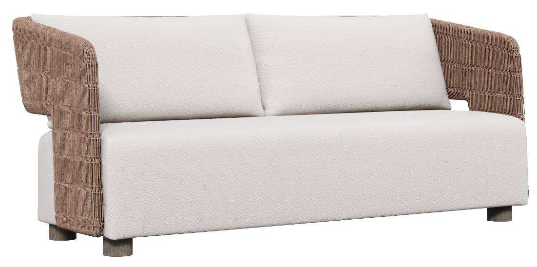The Maldives outdoor sofa crafts an eye-catching design with a frame of twisted abaca all-weather wicker that forms a connected line for the arms and back. A dramatically deep seat drops to the sofa's rounded feet, while sumptuous back pillows create a comfortable outdoor perch.Read More