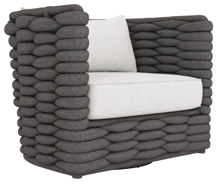 The best of innovation and design in luxury outdoor living culminates in the Wailea swivel chair. A soft-knit, overstuffed sock weave in Cadet Gray wraps around an aluminum frame, offering unique texture and an artistic look. The rounded form provides perfect support while softening the flow of a space.Read More