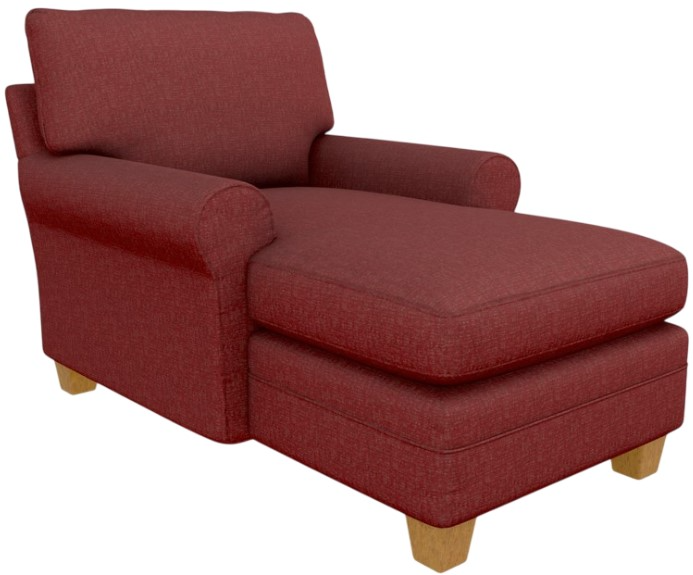 The sturdy hardwood frame built in America ensures durability, while the modern, traditional design adds sophistication to any room. Choose from over 700 fabrics and three wood finishes to make it your own. Elevate your relaxation experience with our upholstered chaise lounge.