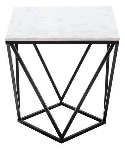 Include this Baxtor White End Table in your room designs, it has a metal base in a black finish and a white marble tabletop. Make a bold statement by incorporating this table into your room design.Read More