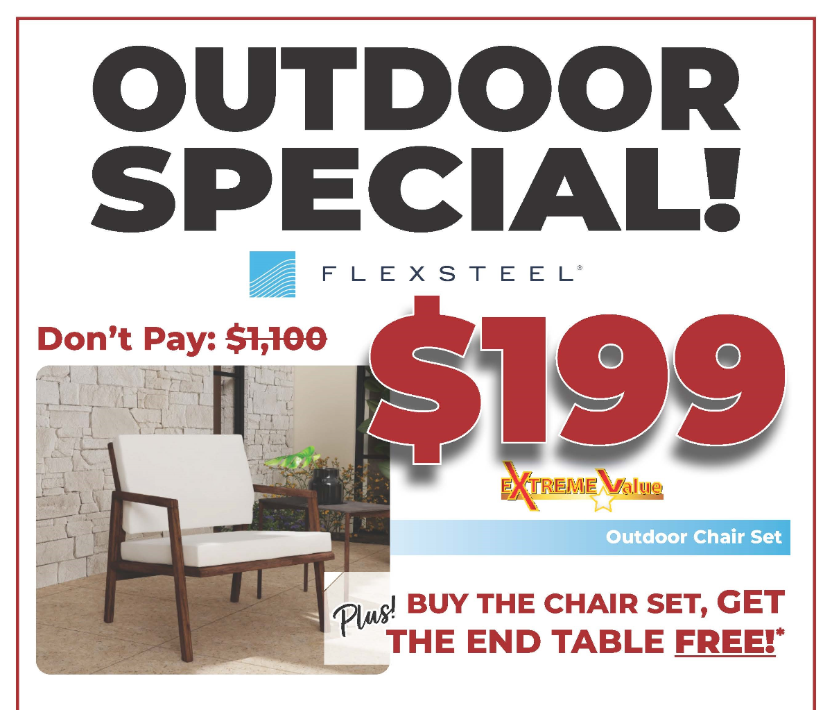 Flexsteel G6300 Outdoor Seating Set. Includes 2 chairs with matching side table.Read More