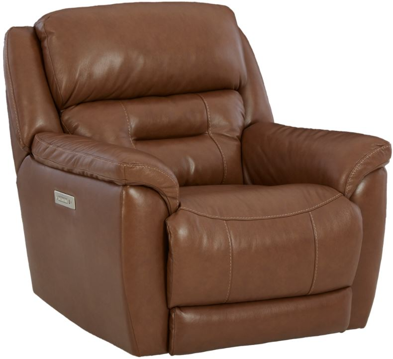 The "Contender" is a sophisticated reclining group in top-grain leather, featuring a power headrest, a power lumbar, and an extended footrest with four extra inches of ottoman height. A top grain, cowhide leather cover and a USB charging port for electronic devices makes this the most stylish and productive seat in the house.Read More