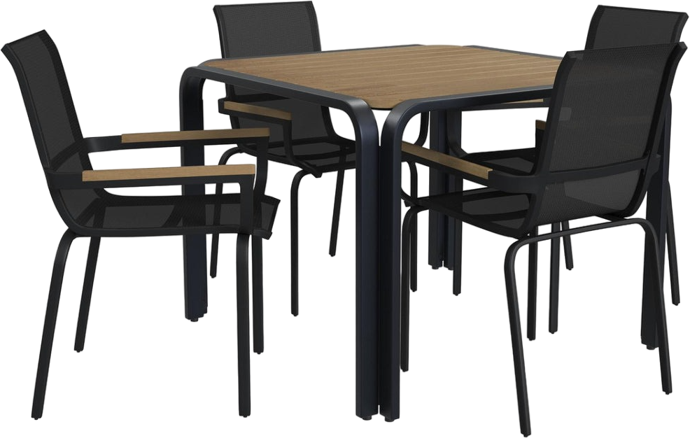 Elevate your outdoor entertaining with a laid-back, luxe look. Offering ample space for sharing meals with up to four people, the Finn 5-piece outdoor dining set is crafted with a lightweight yet sturdy recycled black aluminum frame, durable eucalyptus wood that offers exceptional resistance against the elements, and fade-resistant black mesh seats.Read More