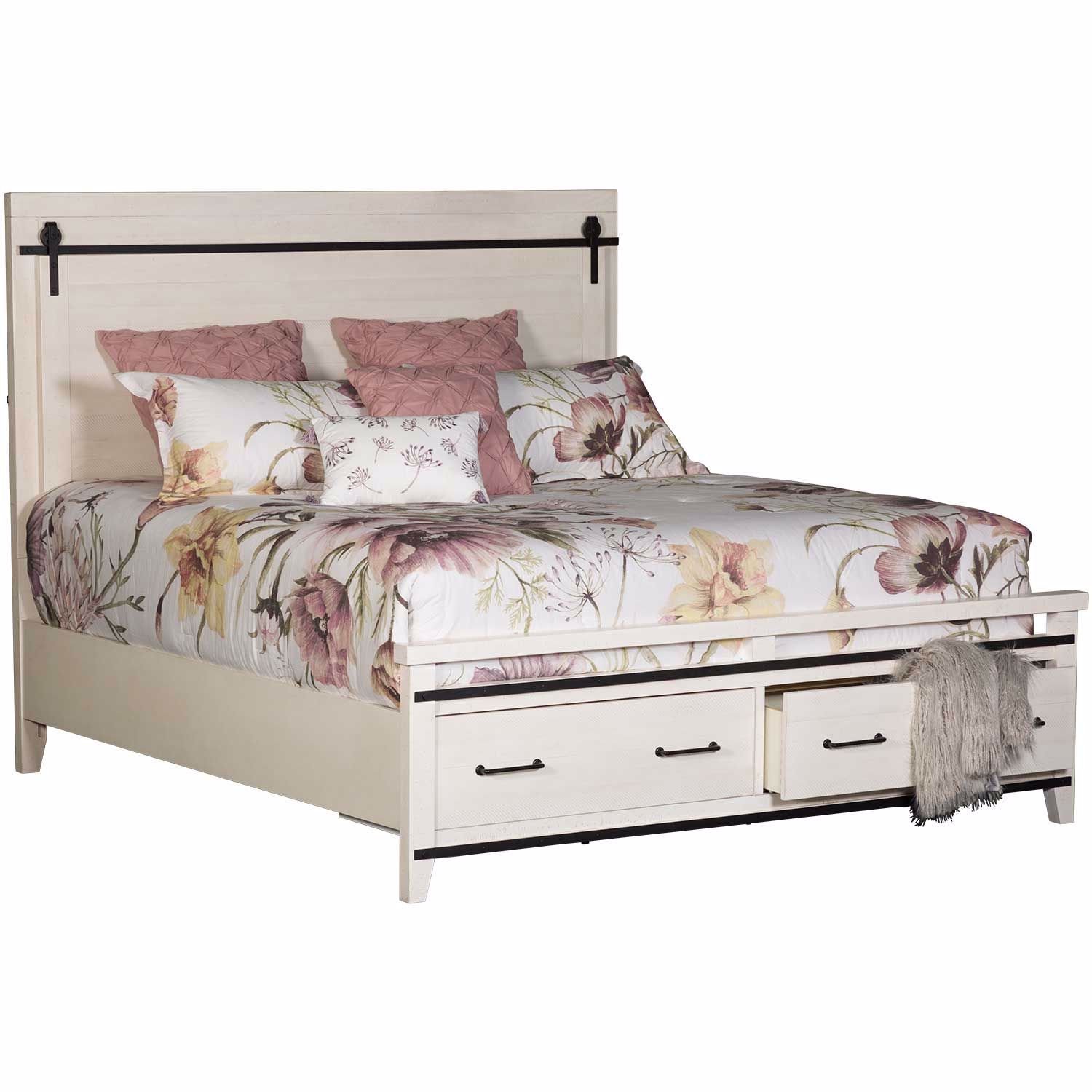 Panel bed features USB in the headboard as well as spacious storage drawers in the footboardRead More