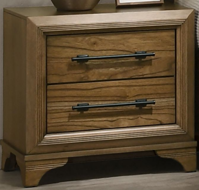 Enhance your bedroom with the Talcott Nightstand in a warm honey finish, expertly crafted from solid rubberwood, manufactured woods, and Mindy wood veneers for strength and stability. This transitional piece combines traditional and contemporary elements, featuring distinctive bracket feet, robust picture frame moldings, and sleek elongated drawer pulls.Read More