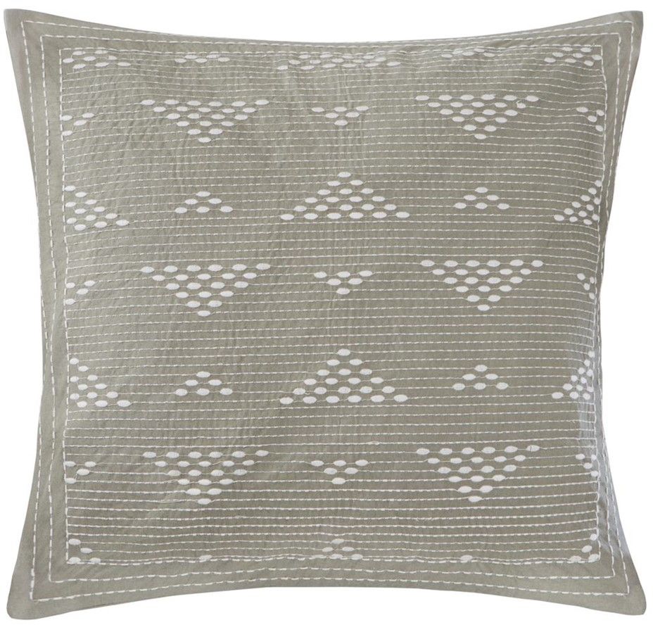 The Cario decorative pillow by INK+IVY is a chic, modern update to any room in your home. The taupe background provides the perfect base for the off-white decorative embroidery that creates a geometric design. This decorative pillow coordinates with the INK+IVY Bedding Collection.