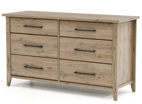 Is your bedroom running out of room for your abundance of clothes and accessories? We’ve got you covered. Create the additional storage space your bedroom needs without having to sacrifice on the style you love with this double dresser from the Summit Station collection. This bedroom dresser features six drawers that open and close on smooth metal runners for convenient storage of a variety of different items like stacks of button-up flannels and denim jeans to cozy sweatpants and your favorite pajamas. The four lower drawers are extra deep so you can store even more! The bedroom furniture storage also offers a spacious top surface that provides you with room to store and display items like an accent lamp, a makeup mirror, bottles of cologne, and photos of your friends and family. This 6-drawer dresser features a strong and lightweight panel construction and is detailed with tapered feet and chamfered edges. Finished in Laurel Oak, this good-looking clothes dresser will have your bedroom feeling organized in no time.