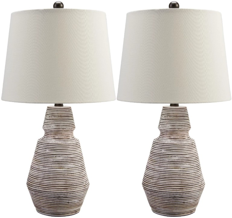 Add an impressive design element to your home with this table lamp. The distressed resin body in brick red and white is topped off with a crisp, fresh fabric shade. Low profile yet eye-catching, this lamp makes a gorgeous accent for contemporary and mid-century modern spaces.Read More