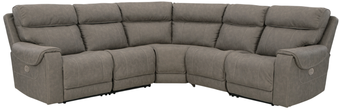 Includes 5 pieces: left-arm facing power recliner, power armless recliner, wedge, armless chair and right-arm facing power recliner