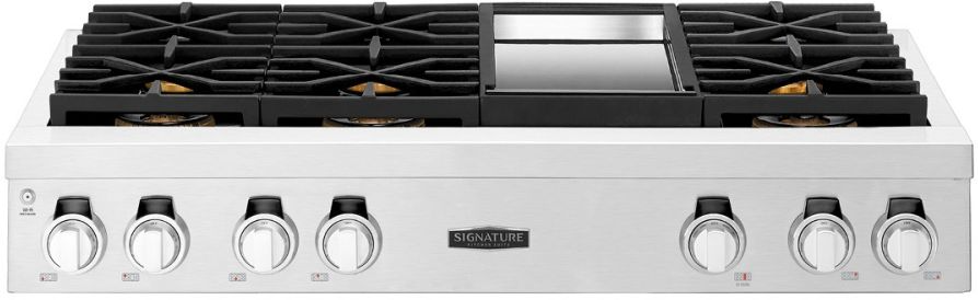 Three Ultra-High Burners deliver 23K BTUs of pure cooking power for better searing and quick stir frying Three Ultra-Low Burners simmer down to maintain temperatures as low as 100° to prepare delicate sauces and sugary confections.