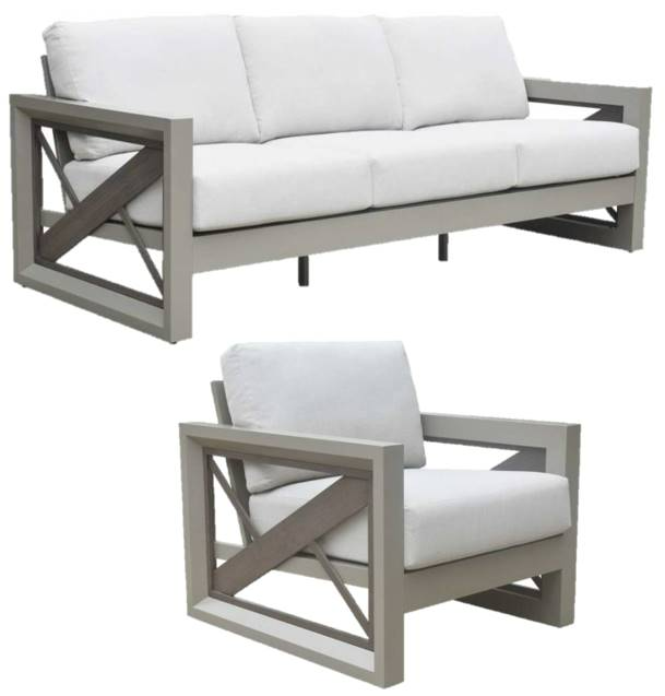Neutral contemporary style in an outdoor set that will make your patio a showcase. This Sofa looks like it was sculpted for the great outdoors with beveled end panels that frame a modern geometric pattern.Read More