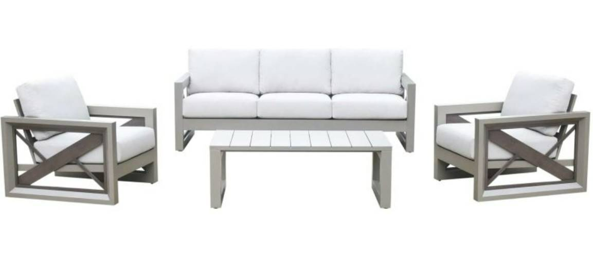 Neutral contemporary style in an outdoor set that will make your patio a showcase. This Sofa looks like it was sculpted for the great outdoors with beveled end panels that frame a modern geometric pattern.Read More