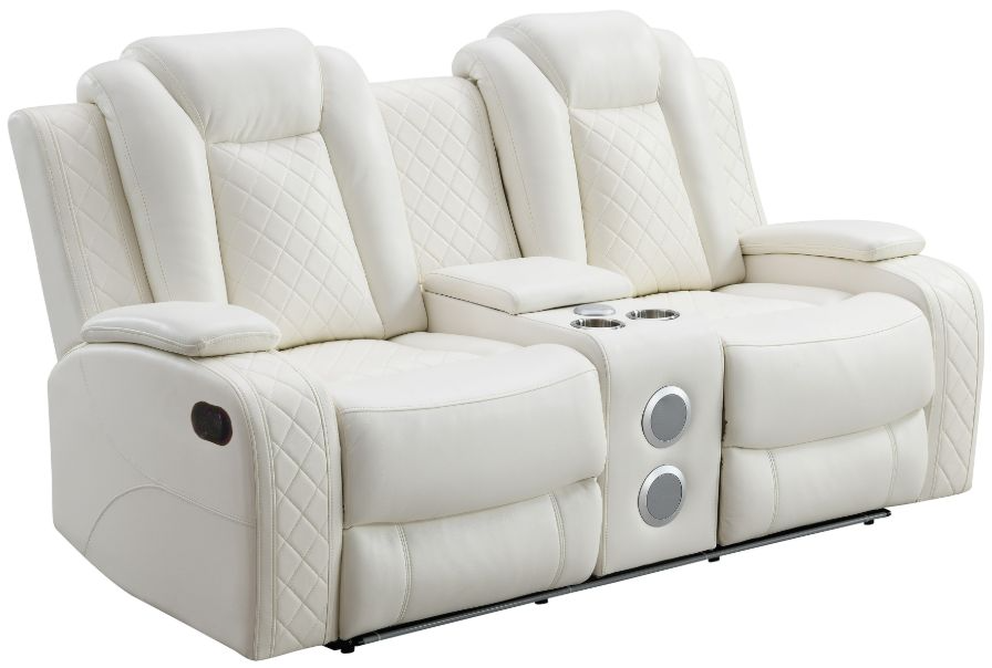 Meet the Orion Console Loveseat, a marvel of durability and comfort designed to elevate your relaxation experience. Crafted with a blend of hardwoods and manufactured wood, its sturdy construction ensures long-lasting strength. Sink into the soft, breathable white upholstery, a luxurious blend of polyester and PU, for a supple feel and cozy seating.Read More