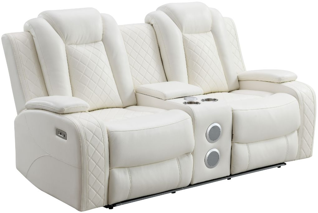 Meet the Orion Power Console Loveseat, a marriage of durability and comfort. Crafted with a blend of hardwoods and manufactured wood, its sturdy frame ensures lasting strength. Sink into its luscious white upholstery, a blend of 80% polyester and 20% PU, offering a supple feel that invites relaxation.Read More