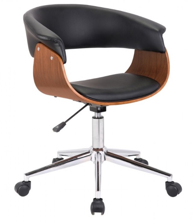 The Armen Living Bellevue mid-century office chair is a perfect addition to the contemporary office. The Bellevue's chrome finished column is beautifully accented by its sturdy walnut wood frame and stylish faux leather upholstery. Not just an exceptionally comfortable chair, the Bellevue also features a 360 degree swivel function and casters for ease of mobility. The stylish Bellevue is available in your choice of grey or black faux leather.