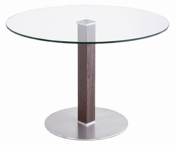 Simple and functional. The Café dining table demonstrates refined design features with its stainless steel base and walnut veneer vertical post with round glass top. Add a touch of sophistication and glamour to your home with this modern dining table.