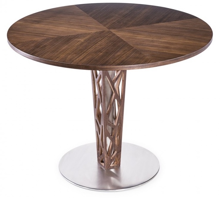 The Armen Living Crystal Dining Table is part of a collection that is sure to be the most intricate furniture piece in your home. It is sleek and has a sculptured Walnut veneer column base that will transform the look and feel of your dining room from a mere home space to a fulfilling dining and conversation experience. The Crystal Dining Table comes in a rich 48" Walnut veneer Wood top on a sleek Stainless Steel base. It comes with the option of a Clear Glass top and can be pairs perfectly with our Crystal Dining Chairs or another other Contemporary Dining Chair style.Read More