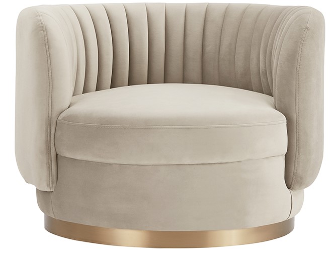 The foam-padded seat cushion of Davy Swivel Accent Chair is plump and soft, making this your new favorite chair in the house to relax in. The Davy has a very special feature that brings a swivel function to this already fantastically designed chair; swivel in a full 360-degree motion for maximum mobility. The rich velvet upholstery is elegantly combined with the thick gold brushed base to create an overall eye-catching addition to your home. The Davy is available in your color choice of Blush, Dark Grey, and Taupe.