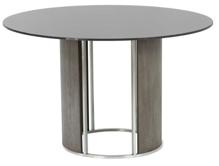 The Armen Living Delano contemporary dining table is a beautiful addition to any modern home. This exquisite round dining table is comprised of a column accented by walnut wood and fitted with an elegant glass top. The Delano is practical yet stylish, a combination that makes it versatile enough to compliment and novel enough to stand out in just about any room of the house. The Delano is available in two styles: brown column with transparent top and gray column with gray top.