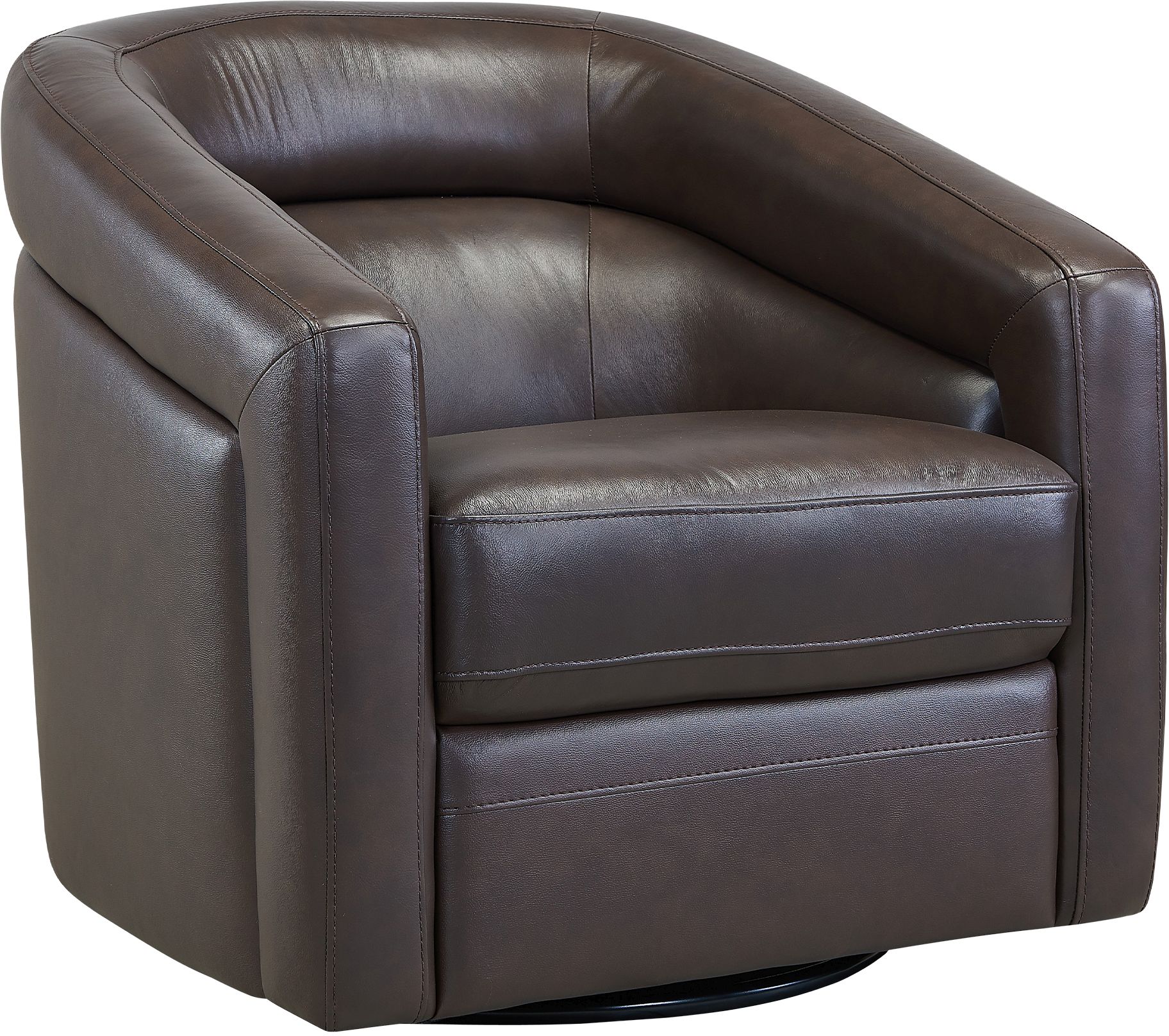 The Armen Living Desi Contemporary Swivel Accent Chair in Black Genuine Leather frame is constructed from durable wood and high-quality steel. The chair’s sleek 100% genuine top grain leather upholstery and high-density foam cushion offer comfort and support. The Armen Living Desi Black Top Grain Leather Swivel Accent Arm Chair is a wonderful addition to your living room, bedroom or home office and is available in 3 color options; Black, Dove Grey or Espresso.