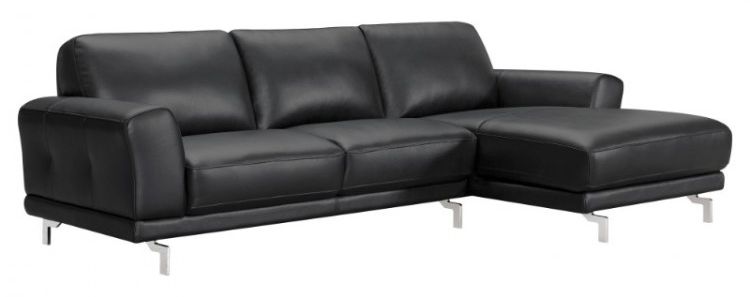 The Armen Living Everly contemporary genuine leather sectional is a terrific comfort piece for any modern household. Retaining the sleek genuine cowhide leather and accompanying Dacron padding of the Everly sofa, the Everly sectional takes comfort to the next level with its extended corner piece. Perfect for lounging, the Everly is designed to offer the maximum degree of relaxation without compromising on the durability that the collection is known for. The Everly's upholstery is specifically made to prevent cracks and wrinkles through prolonged use. Ideal when paired with the rest of the Everly collection; sofa, loveseat, and chair, the Everly sectional is the perfect addition to the modern living room. The Everly sectional is available in your choice of plush black or elegant dove grey leather.