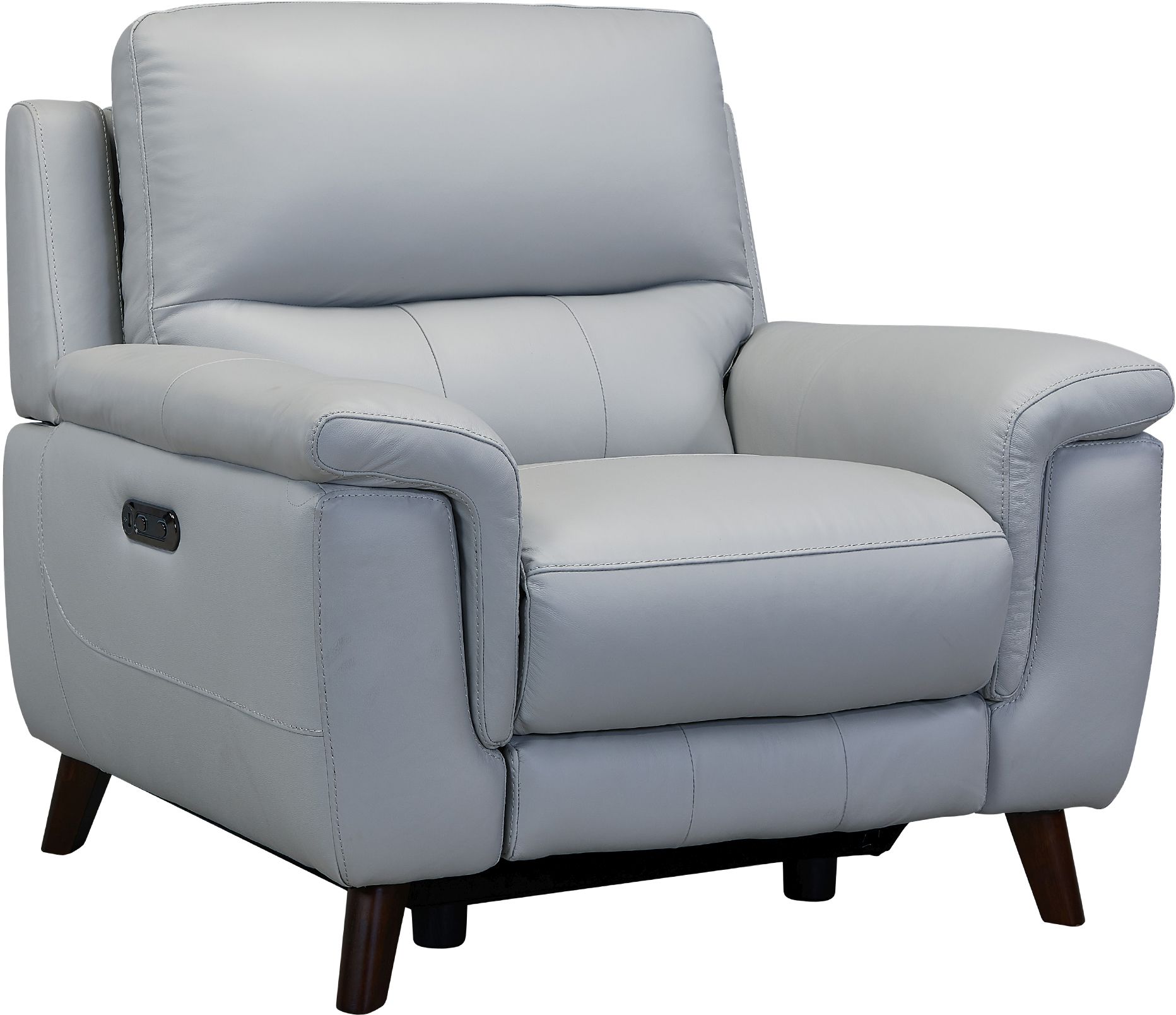 The Armen Living Lizette Contemporary Top Grain Leather Dove Grey Power Recliner Chair with USB features a leg lift mechanism that allows for easy reclining options, offering you an exceptional degree of comfort and relaxation. The impressive frame design features a wood frame construction, visible prominently on the chair’s elegantly slanted legs. The chair’s tall cushioned back, plump seat and supportive arms provide enhanced user comfort without compromising on the chair’s stylish aesthetic quality. The sleek 100% genuine leather upholstery is very appealing to the eye and resonates an air of modern sophistication. The Lizette collection also available in a sofa and loveseat. Available in Dove Grey genuine leather upholstery.