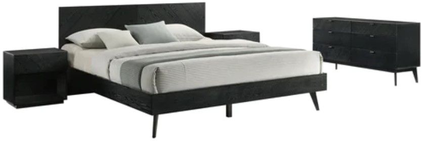 Four (4) piece set includes (1 king bed, 2 nightstand, 1 dresser)