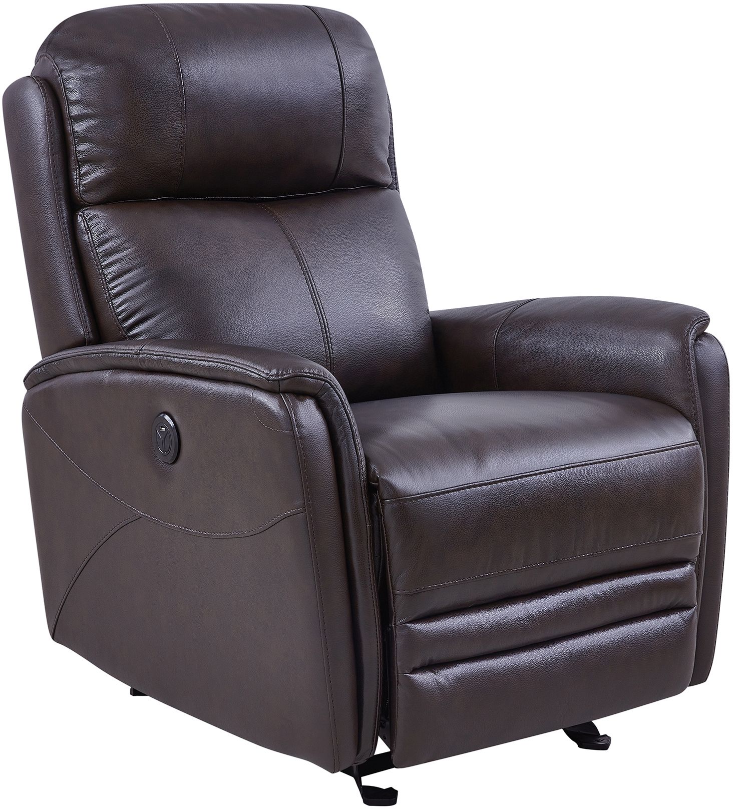 The Armen Living Wolfe Dark Brown Contemporary Top Grain Leather Power Recliner Chair with USB Charging Port features a combination of wood and metal to bring you an exceptionally durable product. The Wolfe’s comfortable 2.2 density, semi-firm foam cushion provides you with a soft seat and a firm back for added lumbar support. The Wolfe’s stylish hand-stitched details serve as a nice aesthetic touch to the already luxurious recliner. Perhaps the most impressive feature of the Wolfe is its steel reclining mechanism, which allows the user to easily shift positions while seated. An excellent choice for the living room, bedroom, den or home office, the Wolfe is certain to meet all your expectations. This recliner is available in two stylish upholstery options; Black and Dark Brown Top Grain Genuine Leather.