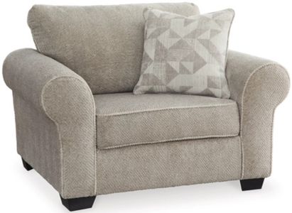 Everyday form, superb function. Framed with roll arms for a dash of flair, this oversized chair sets its sights on trendy transitional design. The neutral hue meshes with multiple color palettes, providing chic seating wherever you need it most. Soft-to-the-touch fabric aids you in superior relaxation. Now that's a universal style, made simple.Read More