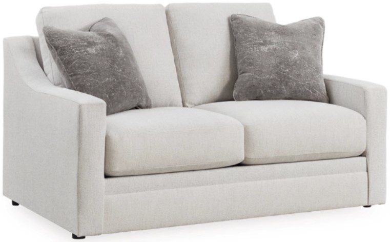 Clean lines and a streamlined silhouette define the architectural attitude of this loveseat. Textured accent pillows in complementary colors add subtle contrast. The loveseat's plush reversible cushions beckon you to sit down, get comfy, and relax completely.Read More