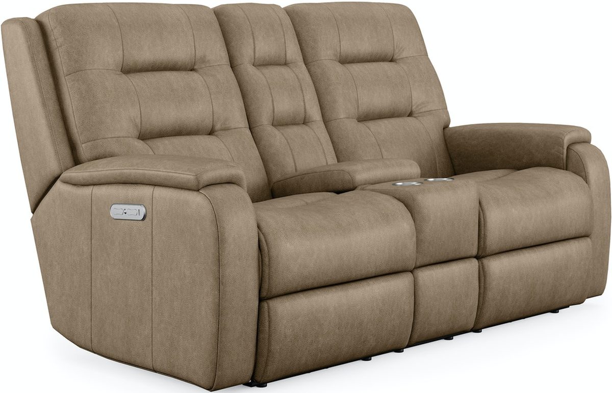 Take comfort to the next level with the Arlo Power Reclining Loveseat with Console. Available in our premium leather upholstery, this loveseat will add refinement to any living space. The spacious center console includes storage for glasses, magazines and other personal items and features two cup holders. Easy-to-access power controls with built-in USB charging ports in both arms allow you to independently adjust the headrest and recline, dialing in the right level of comfort for each person. To make Arlo your own, choose from more than 50 leather or leather match options.