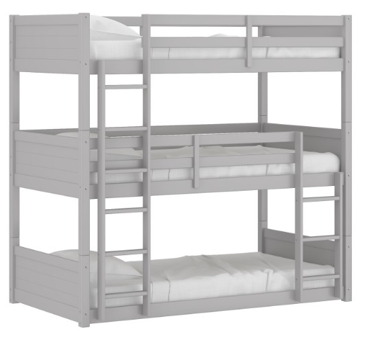 Stylish Gray Wood Triple Bunk Bed with shiplap design