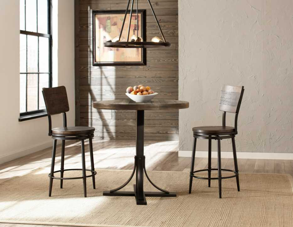 A prime addition to your industrial or transitional décor. The Hillsdale Furniture Jennings 3-Piece Counter Height Dining Set with Swivel Stools is right at home with exposed brick and rafters.Read More