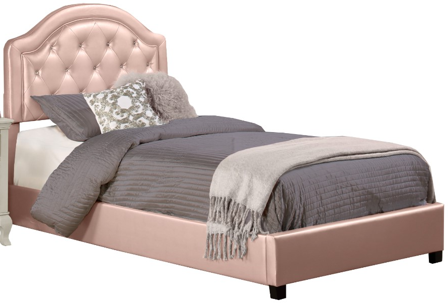 Glitz and glam steal the show in the Hillsdale Furniture Karley Twin Platform Bed. Ideal for a girl’s room, this bed features pink faux leather with diamond-pattern tufting that includes glass rhinestone buttons. The arched headboard boasts welt piping, low profile headboard and footboard are complimented by dark wood feet.Read More