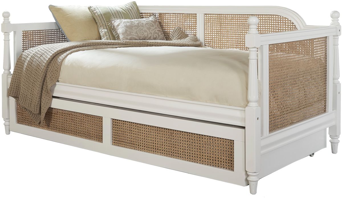 Both coastal and French country, Melanie cane daybed with trundle is a show stopping addition to your decor. Designed with attention to every detail, this daybed features a dynamic off white finish on the frame, elegant contoured posts and oblong finials, and a complimentary natural finish on the inset cane panels.Read More