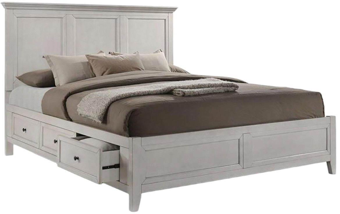 Solid wood bedroom suite available in two classic finish colors – Tuscan and Rustic White. Storage and standard bed rails in queen and king sizes plus four case piece options give plenty of room for organization.