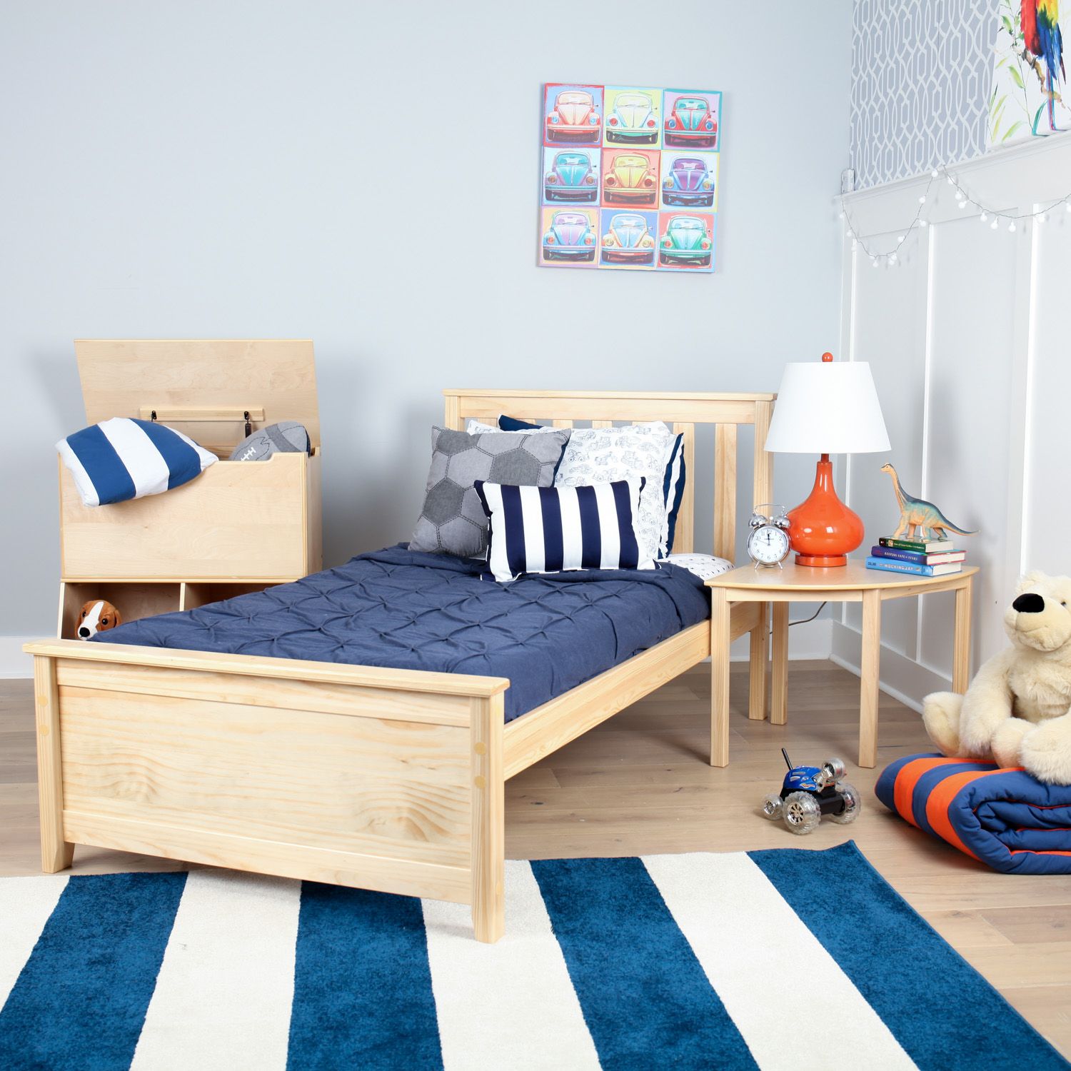 Natural Twin Bed with slatted Headboard and panel footboard.Read More